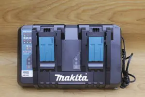 電動工具のバッテリーを2つまで高速充電できる、たくさんの電動工具を扱う事業所向けの一台です。
