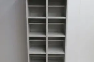 縦長タイプで増設に便利な中板付きシューズロッカーです。